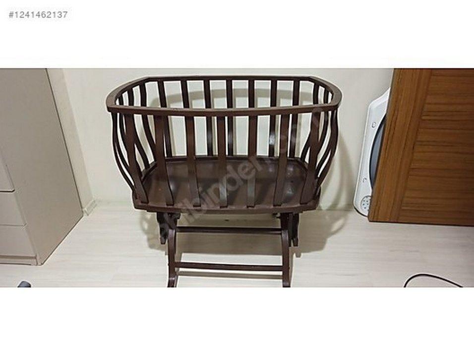 Koyu Kahverengi Ahşap Bebek Beşiği