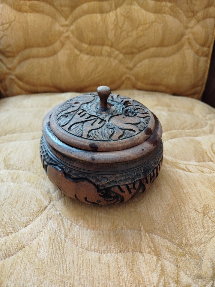 Koyu Kahverengi Ahşap İşlemeli antika süs eşyası