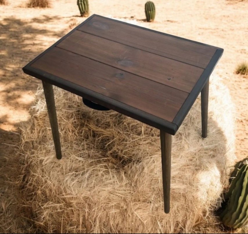 Koyu kahverengi ahşap malzemeden yapılmış, dört ayaklı sade ve sağlam bir masa. 1. Sınıf gürgen ağacından üretilmiştir.; 39x53 cm ebatlarındadır.; Yükseklik52 cm'dir.,; Su,güneş ve rutubete karşı son derece dayanıklıdır.