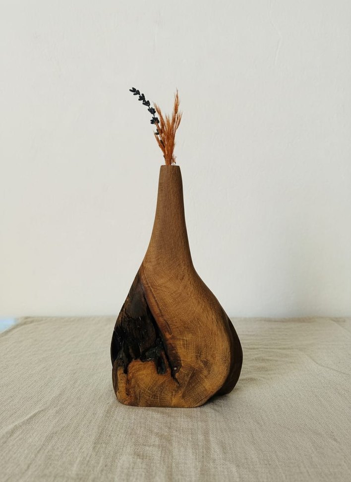 Koyu Kahverengi Ahşap Vazo