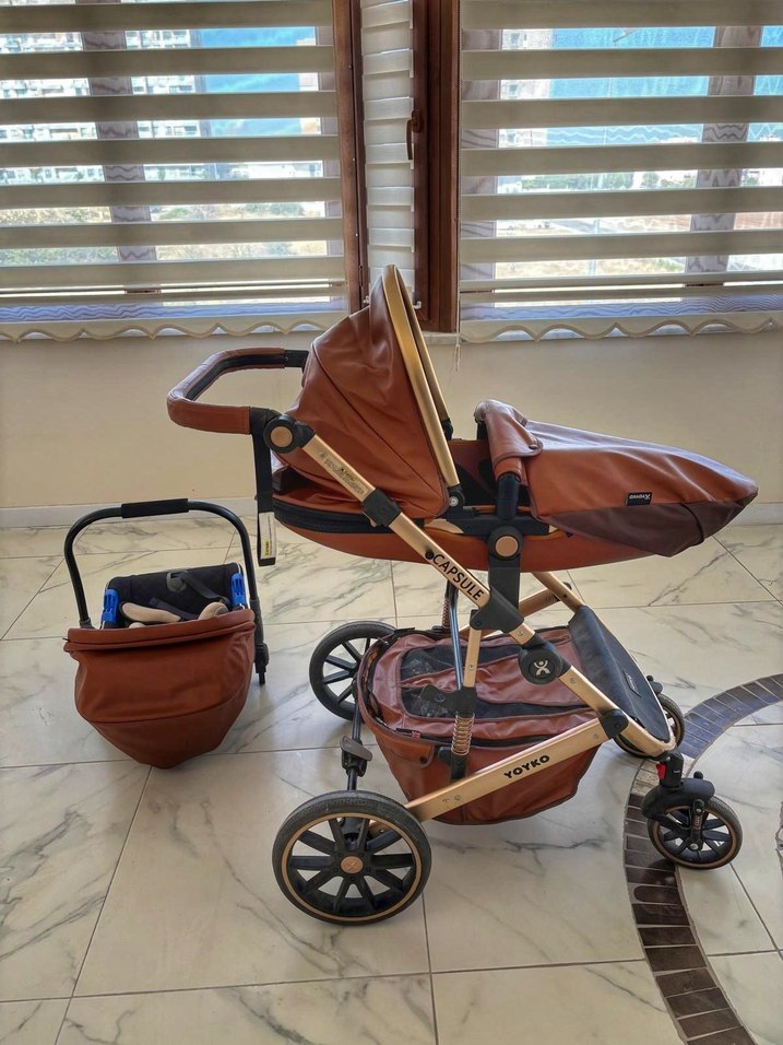Kahverengi Yoyko Capsule Egg Travel Sistem Bebek Arabası sadece 2. resimde kücük bir deforme vardir onun disinda sorunu yoktur.