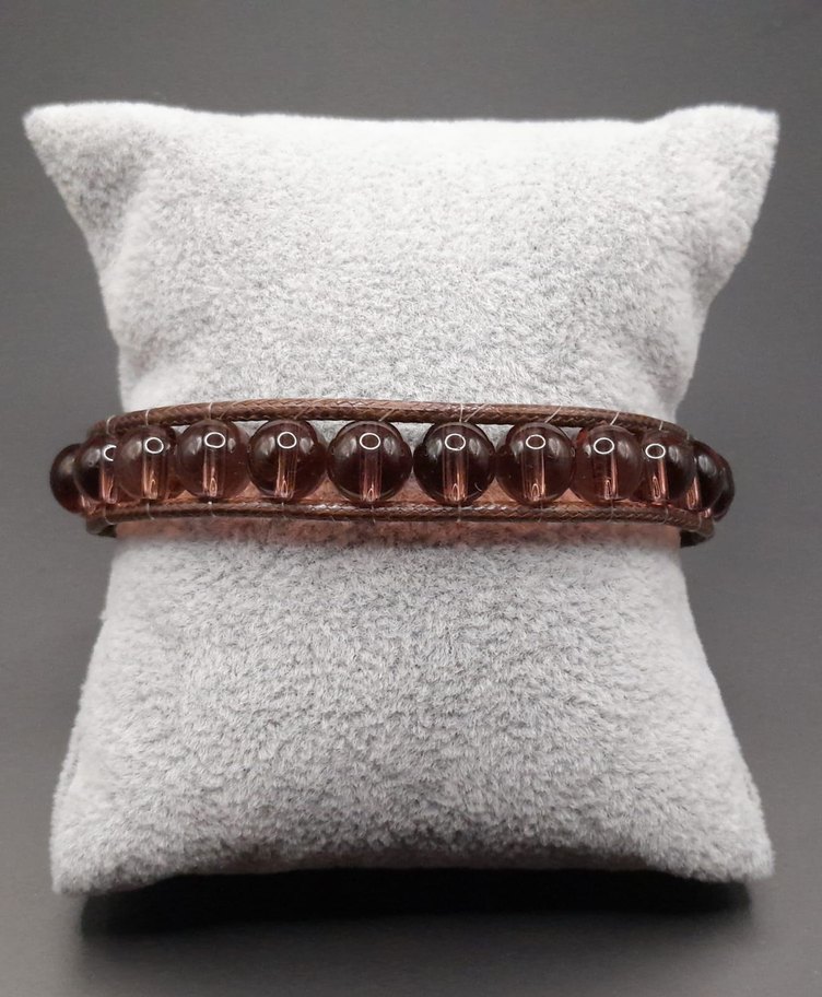 Yuvarlak boncuklardan oluşan, yumuşak bantlı koyu kahverengi bohem bileklik. Retro ve hippie tarzı sevenler için uygun dükkanımda daha çok seçenek bulunur