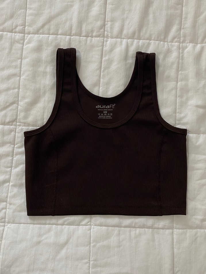 Koyu kahverengi renkli, yuvarlak yakalı ve kolsuz tasarıma sahip vücudu cok guzel gösteriyo göğüsleri toparlayıp beli ince gösteriyio Yumuşak ve rahat kumaş.