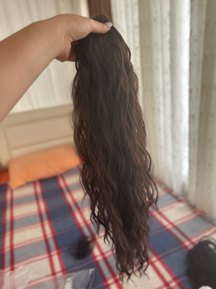 koyu kahverengi sentetik uzun dalgalı atkuyruğu, 66.04 cm saç uzunluğunda ve elastik bantlıdır. hiç kullanılmadı