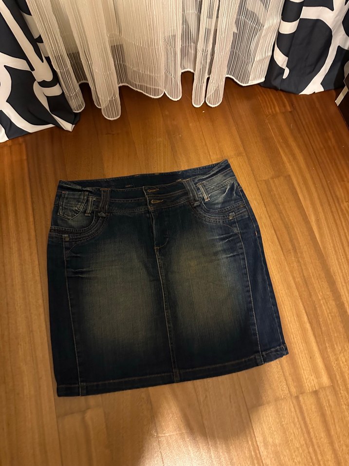 Koyu kahverengi, fitted kesim denim mini etek, günlük kullanıma uygun sade ve rahat bir tarz sunar. Normal boyda ve desensizdir.