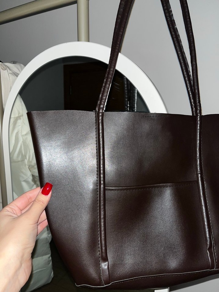 Koyu kahverengi deri kadın çantası, fermuarlı kapama ve desen içermeyen şık tasarımıyla günlük kullanıma uygundur. Modern tarzıyla trend görünüme uyum sağlar.