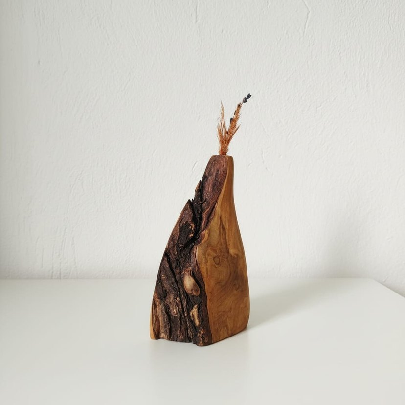 yurtdışı satış sitemiz kapandığı için elden çıksın diye en dip fiyata koyuyorum normalde bu ahşap vazoların tanesi 1500₺ dir seri üretim değil özel üretimdir aynısından bir tane daha yok doğal kabuklu kestane ağacıdır. kuru çiçek vazosudur. Koyu kahverengi doğal ahşap dokusuna sahip, düzensiz şekilli vazo, kuru çiçekler için uygundur.