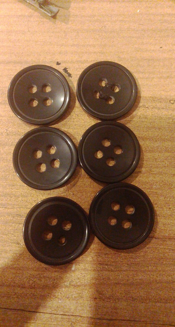 Dört delikli, koyu kahverengi altı adet düğme seti. El işleri için uygun.