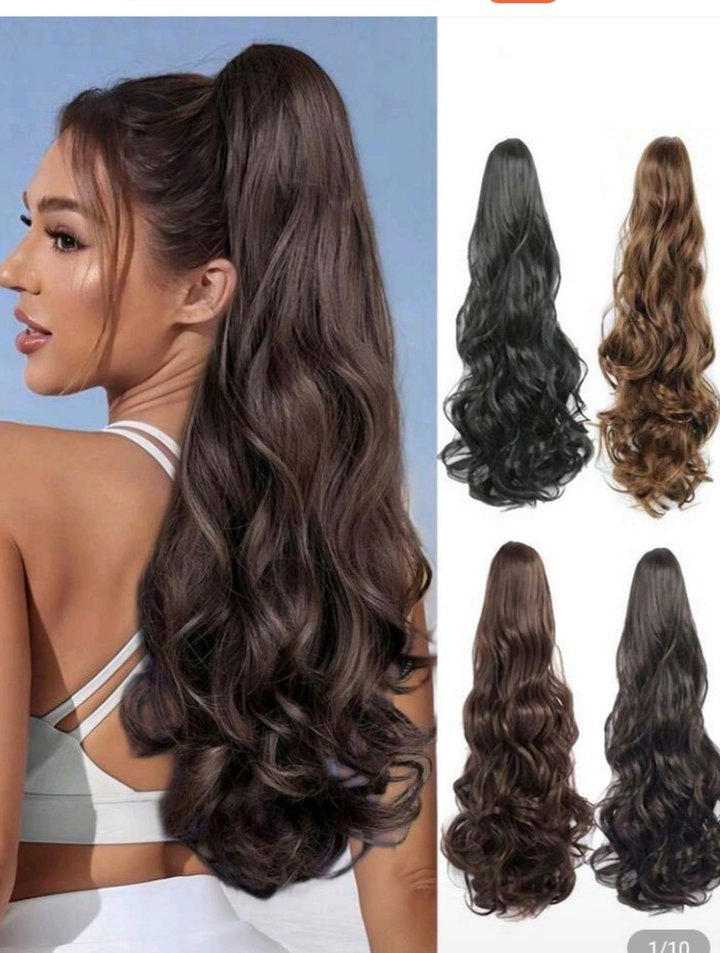 Koyu kahverengi, ipek görünümlü, elastik bantlı kadın saç tokası Cesur ve çağdaş bir görünüm için hacim ve uzunluk sağlar.
