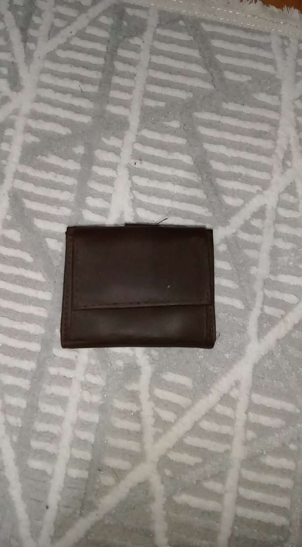 Koyu kahverengi, desen içermeyen minimalist tasarımlı erkek cüzdanı, sade ve klasik bir görünüme sahiptir.