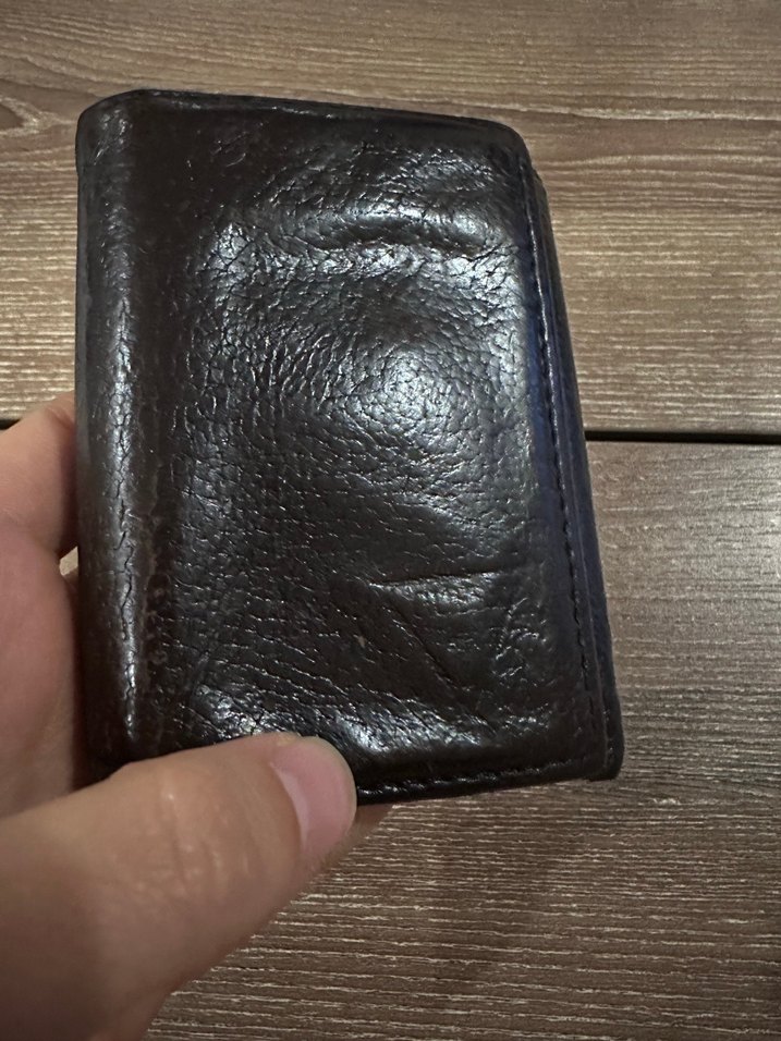 Düz, koyu kahverengi, minimalist erkek cüzdanı, yumuşak gerçek deri malzemeden yapılmıştır. Köşelerinde kullanıma bağlı yıpranmalar var ancak sağlam. Boyadım ilk fotoğrafta görebilirsiniz. Orjinal guess marka erkek cüzdan deri cüzdan siyah cüzdan guess cüzdan marka cüzdan
