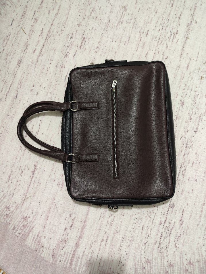 Koyu kahverengi, fermuarlı ön cep ve sade, çağdaş tasarıma sahip erkek evrak çantası. Dayanıklı kulpları ve desensiz yüzeyiyle iş kullanımı için uygundur. Kulpları değiştirebilirsiniz birde içinde sökük var dikilebilinir kullanıma engel değil. fotoğraflarda gördüğünüz gibi.