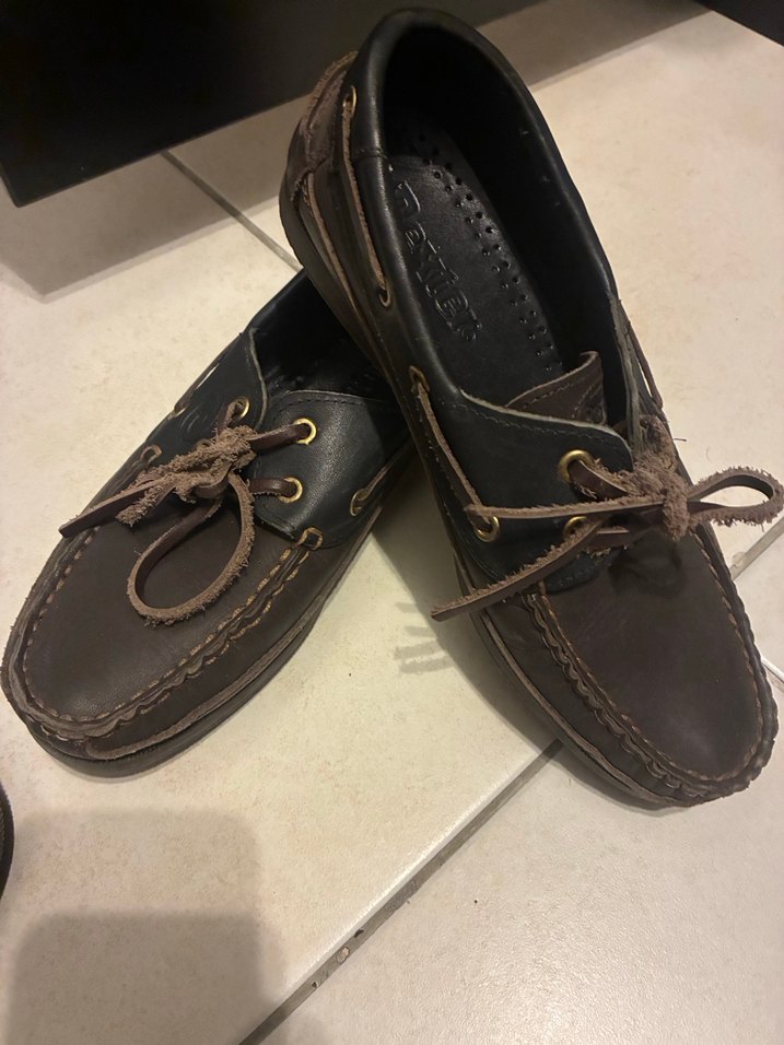 Koyu kahverengi deri günlük ayakkabılar, klasik ve geleneksel tarzda, tokalı detaylara sahiptir. Desensizdir ve günlük kullanıma uygundur.