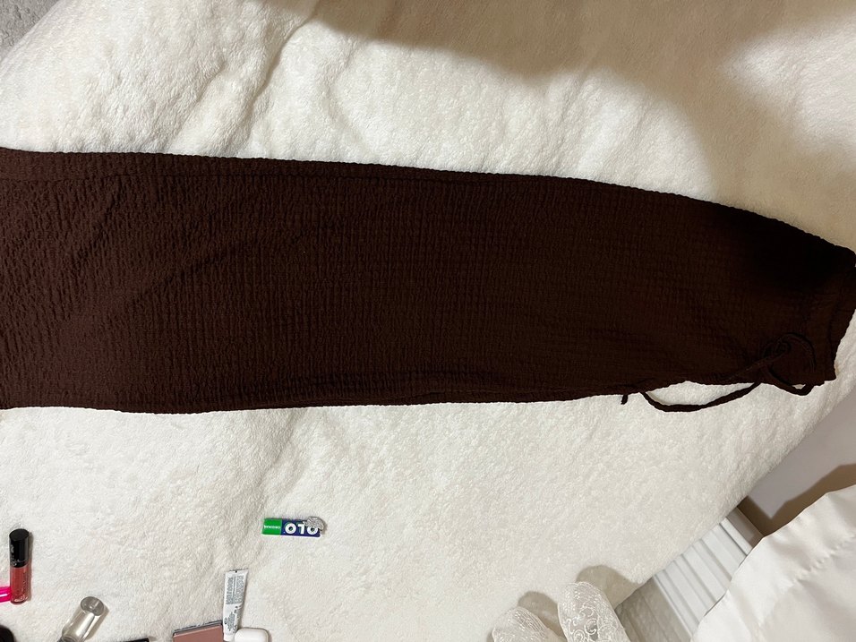 Koyu kahverengi rahat kumaşı ile gofre pantolon hediye gelmiştir. Tarzım olmadığı için elden çıkarmak istedim