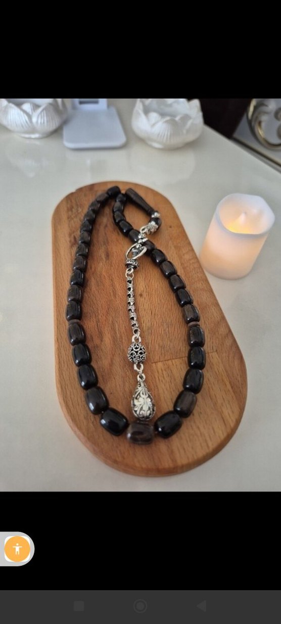 Koyu kahverengi erkek tesbihi, geleneksel tasarım ve gotik tarzda gümüş detaylarla tamamlanmıştır. ️