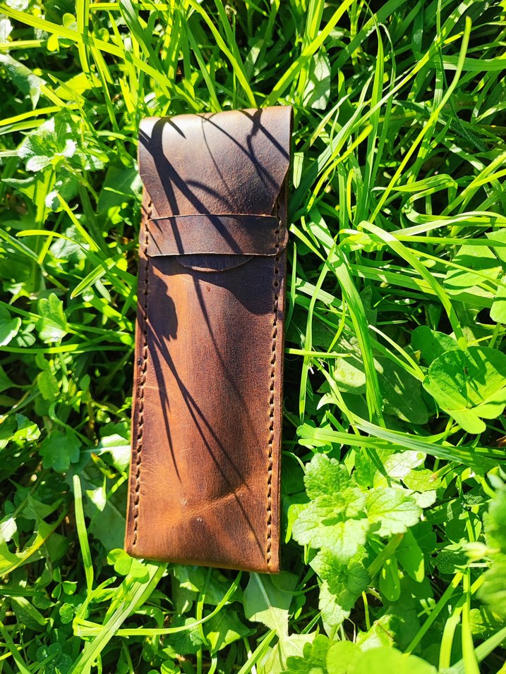 Koyu kahverengi, desensiz, kapaklı kalemlik, Hakiki Deri.El yapımı İstenirse kişiselleştirme yapılabilir.Lazer kazıma isim,harf yazılır.