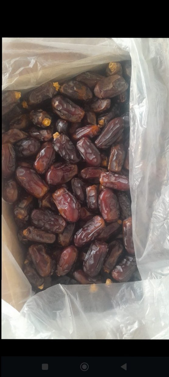 Koyu kahverengi hurmalar, doğal tatları ve dokularıyla bir gıda kabında paketlenmiş.