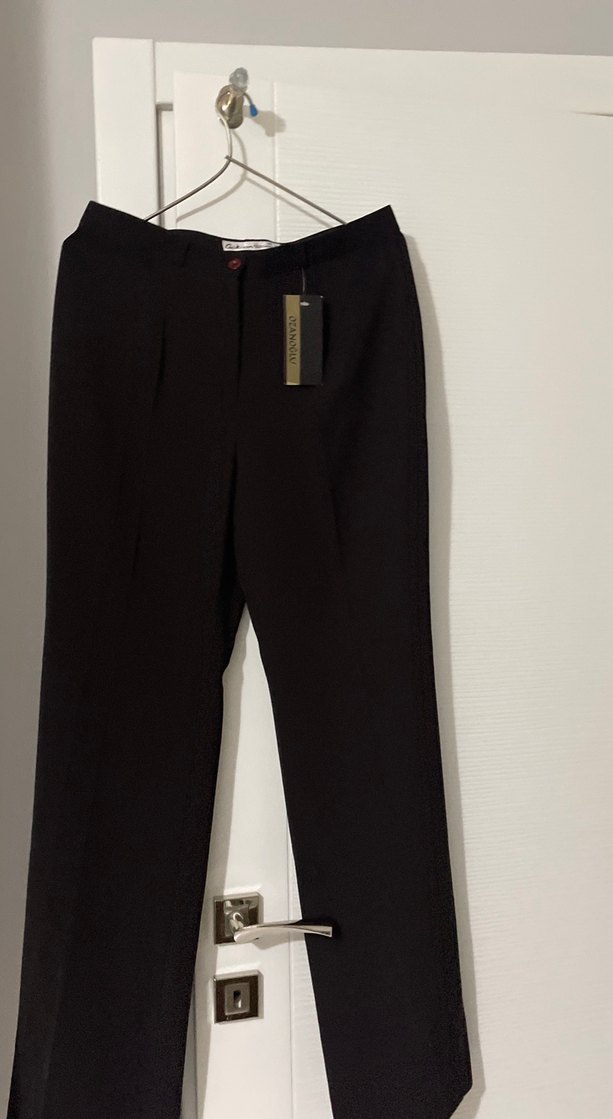 Koyu kahve, ipeksi kumaştan, kadın pantolon. Ofis ve günlük şıklık için uygun, desensiz ve rahat bir tasarım. Boyu uzun ve bel kısmı dar basene doğru genişleyen bir model beli ince olanlar tercih etmeli.