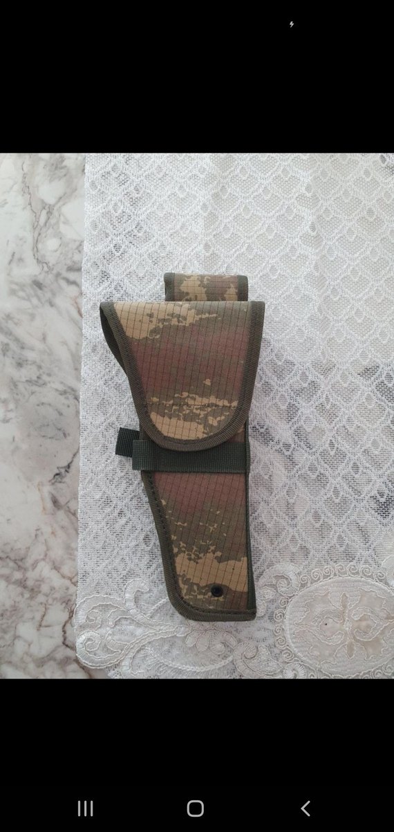 Koyu kahverengi kamuflaj desenli, sağlam kumaştan yapılmış, kapaklı silah kılıfı. 2 adet fiyatıdır