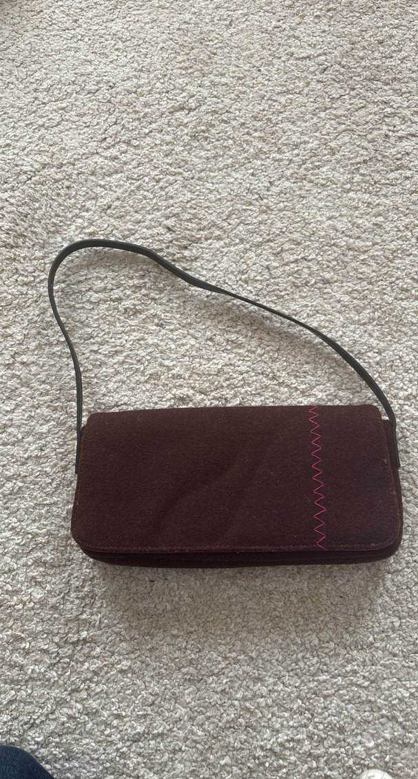 Koyu kahve renginde, yumuşak keçe kumaştan yapılmış tokalı kadın çantası. Minimalist ve çağdaş tarzda, günlük kullanıma uygun, desensiz sade tasarım. Eni 25 cm dir #Mango #çanta