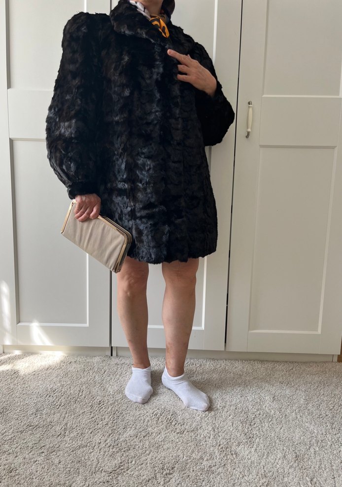 Siyah midi boy, uzun kollu, çentikli yaka detaylı, gerçek kürk kumaştan, bol kesim kadın kaban. Rahat ve şık goth tarzı için ideal. M-L arası için ideal Oldukça sıcak tutan ve elegan duran bir yapısı var