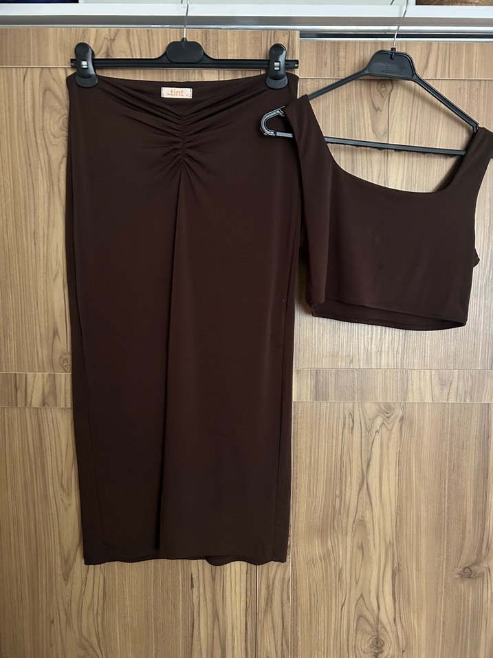 koyu kahverengi midi ete askılı üst takım 1 kez giyildi
