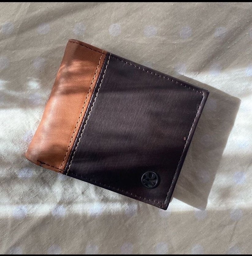 Bu erkek cüzdanı, koyu kahverengi tonlarda minimalist tasarım ve hafif desenle trendy casual ve counterculture tarzlarını birleştirir.