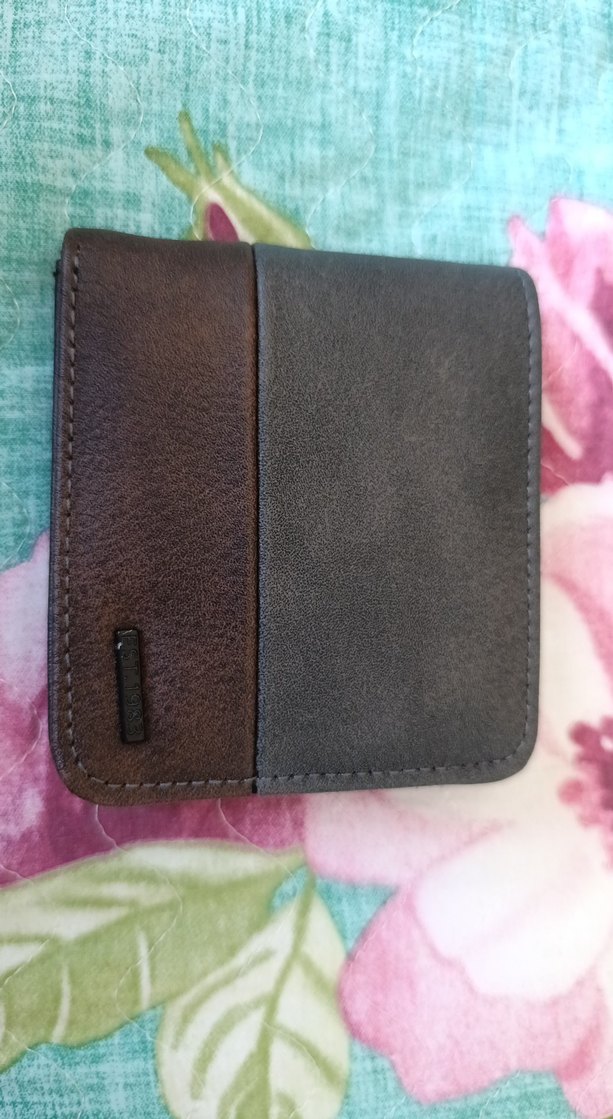 Koyu kahverengi, desen içermeyen minimalist erkek cüzdanı, yumuşak dokulu ve trend günlük stile uygun.