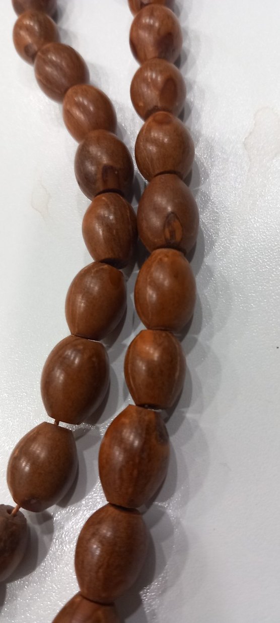 Koyu kahverengi, sade ve klasik tarzda, pürüzsüz ahşap tanelerden oluşan minimalist erkek tesbih.