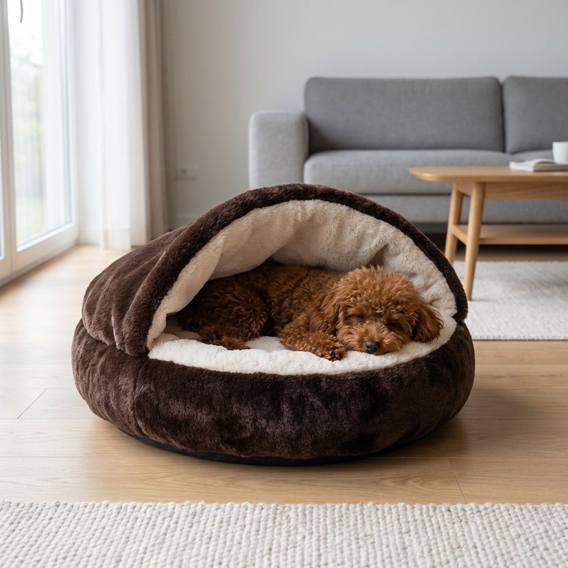 Koyu Kahverengi Peluş Evcil Hayvan Yatağı