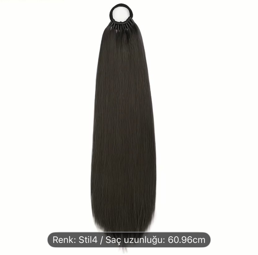 Kadın saç aksesuarı, siyah, ipeksi ve püsküllü tasarıma sahiptir. Saç uzunluğu 60,96 cm, minimalist ve gotik tarzlara uygundur. ✨