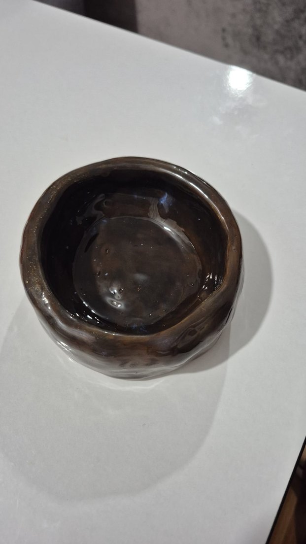 Parlak yüzeyli, düzensiz şekilli koyu kahverengi seramik