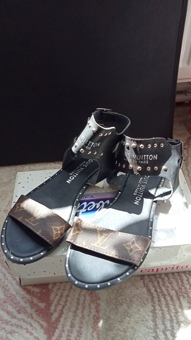 Koyu Kahverengi-Siyah parlak deri, desenli, tokalı sandalet / terlik, trend sokak stiliyle. 37 numara Alana hayırlı olsun .☺️