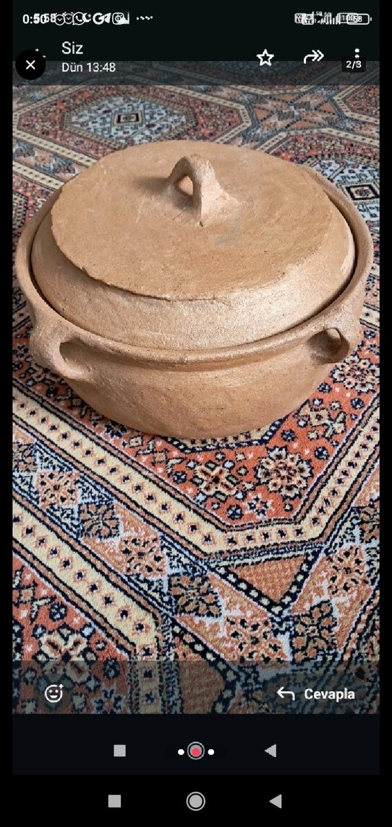 Kapağı ve yan kulpları olan koyu kahverengi toprak tencere, geleneksel pişirme için uygundur.