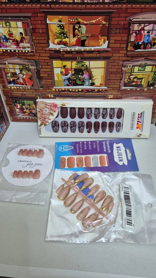 Koyu Kahverengi ve Desenli Takma Tırnak Seti