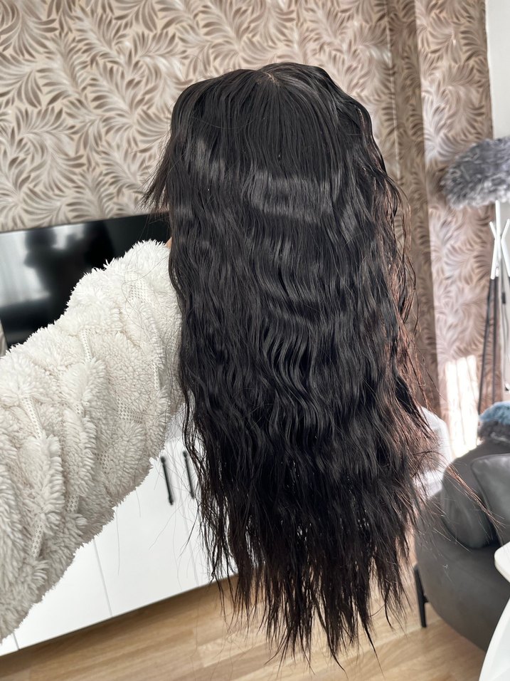 Bohem tarzda, kahverengi ve gri tonlarda, sentetik kumaştan yapılmış kürk detaylı saç ektir. Retro ve hippie havası katar.