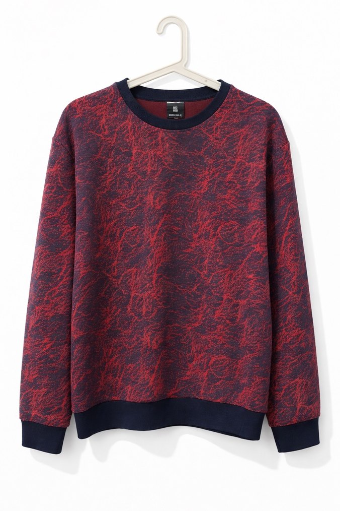 Koyu Kırmızı Bağlama Desenli Erkek Sweatshirt