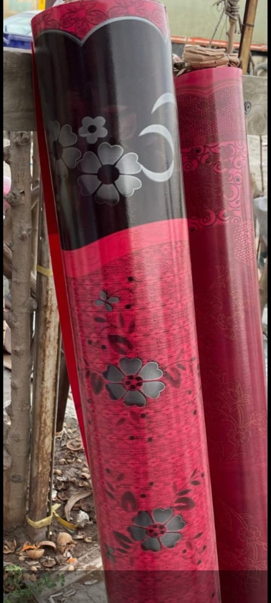 Koyu kırmızı renkte, baskılı çiçek desenlerine sahip klasik tarzda bir yer sofrasi