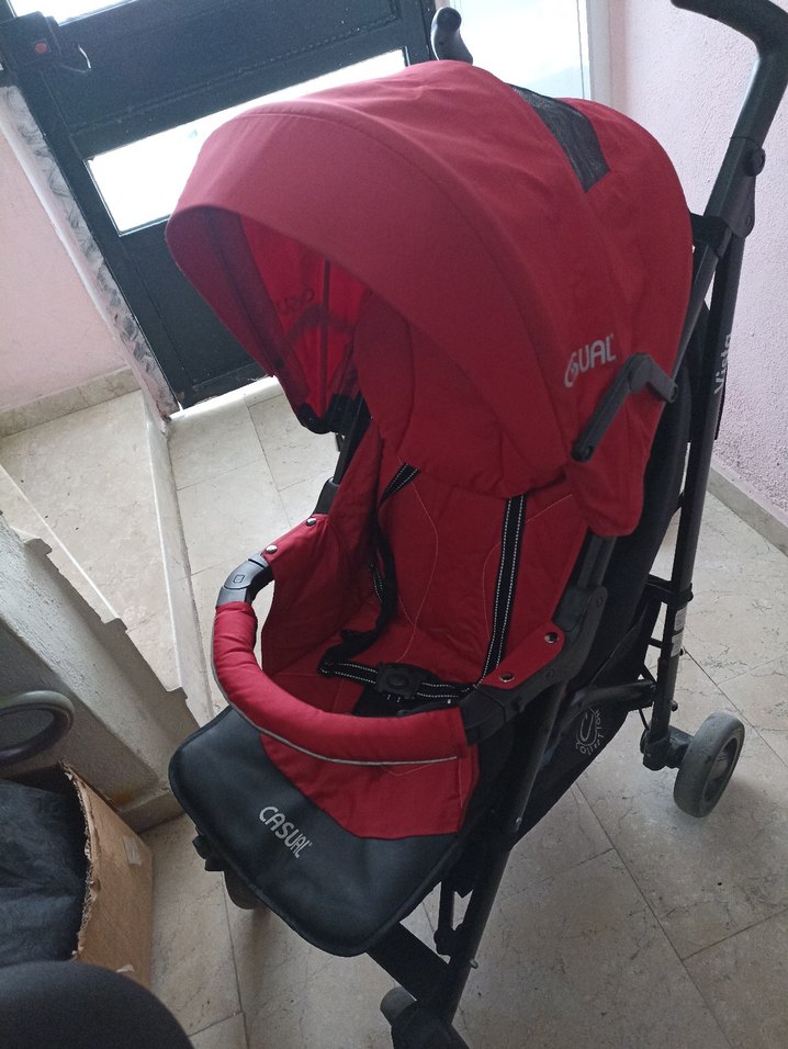 Koyu kırmızı renkte, tente, güvenlik kemeri ve konforlu oturma alanı bulunan bebek arabasıdır. Hafif yapısıyla kolay yönlendirilir. bir sefer kullanıldı bizde yedek olduğu için bunu kullanmadık marka casuel dir ayak yorgonida vardır
