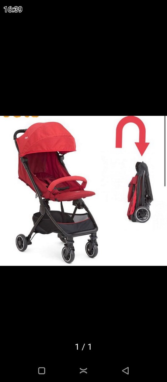 Koyu kırmızı renkte, katlanabilir tasarıma sahip bebek arabasıdır. Gölgelik ve ön güvenlik barı bulunur.
