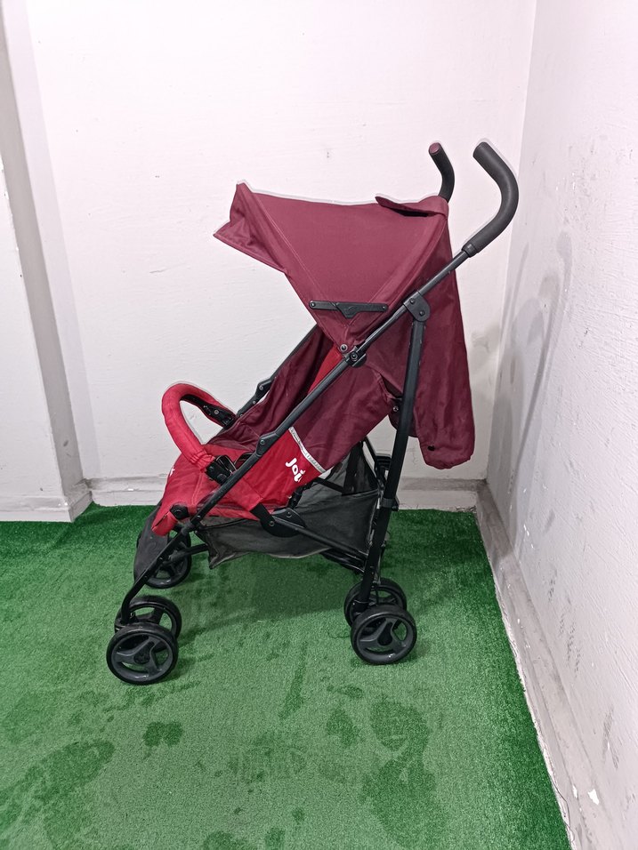Koyu kırmızı bebek arabası, tente, rahat tutacaklar ve alt kısmında saklama sepeti ile tasarlanmıştır. Dört çift tekerlek kolay kullanım sağlar. Hiçbir sorun sıkıntısı yok tertemiz sağlamdır alabilirsiniz bende birsürü bebek arabası var sayfama bakabilirsiniz
