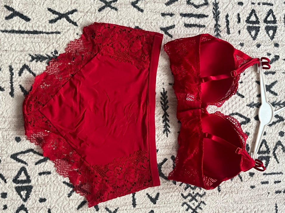 Koyu kırmızı renkte, bohem tarzı dantel detaylı ve normal boyda rahat bir sütyen takımıdır. Desensiz kumaşıyla sıcak ve şık bir görünüm sunar. ❤️