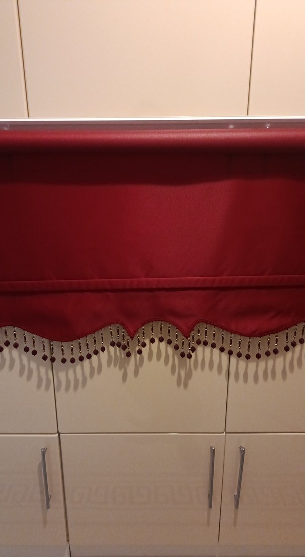 Koyu kırmızı bordo boncuklu özel dikim stor perde boy 150 en 1 metre düz (boncuksuz) özel dikim stor perde 2 adet en 80cm yere kadar 3lü satış fiyatıdır