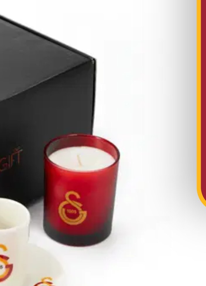 Koyu kırmızı camda, önünde altın renkli amblem bulunan basit fitilli mum. ️
