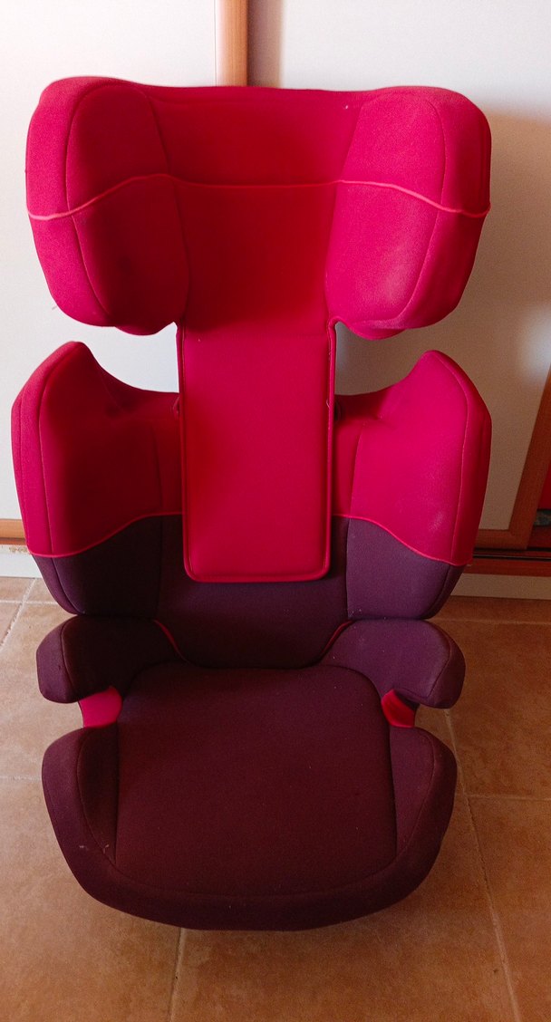 Koyu kırmızı renkli, yanları ve baş dayama yeri yastıklı çocuk oto koltuğu. Daha büyük çocuklar için uygundur. 15-36 kg