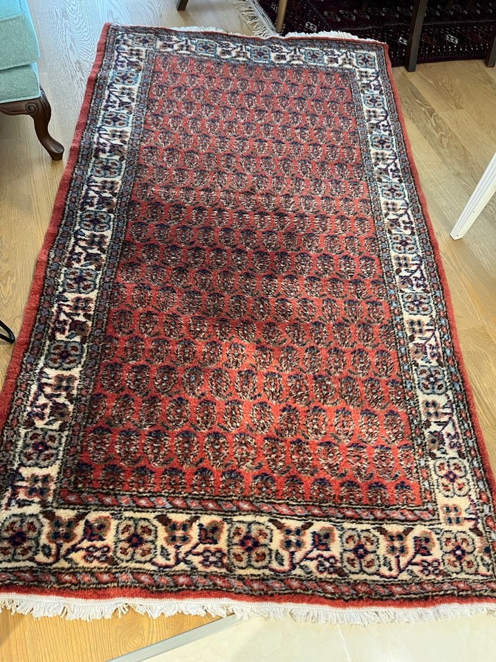 ISPARTA EL DOKUMASI YÜN HALI Çok az kullanılmıştır 2 iki adettir Ölçüleri 120 cm en 225 cm boy olarak 2 iki adettir FİYAT BİR HALININ FİYATI dır Birlikte alınırsa indirim yapılır Birlikte alınıp yolluk şeklindede kullanılabilir Koyu kırmızı zemin üzerine desenli kenarları olan geleneksel tarzda, yumuşak dokulu ve püsküllü kenarlara sahip halı.