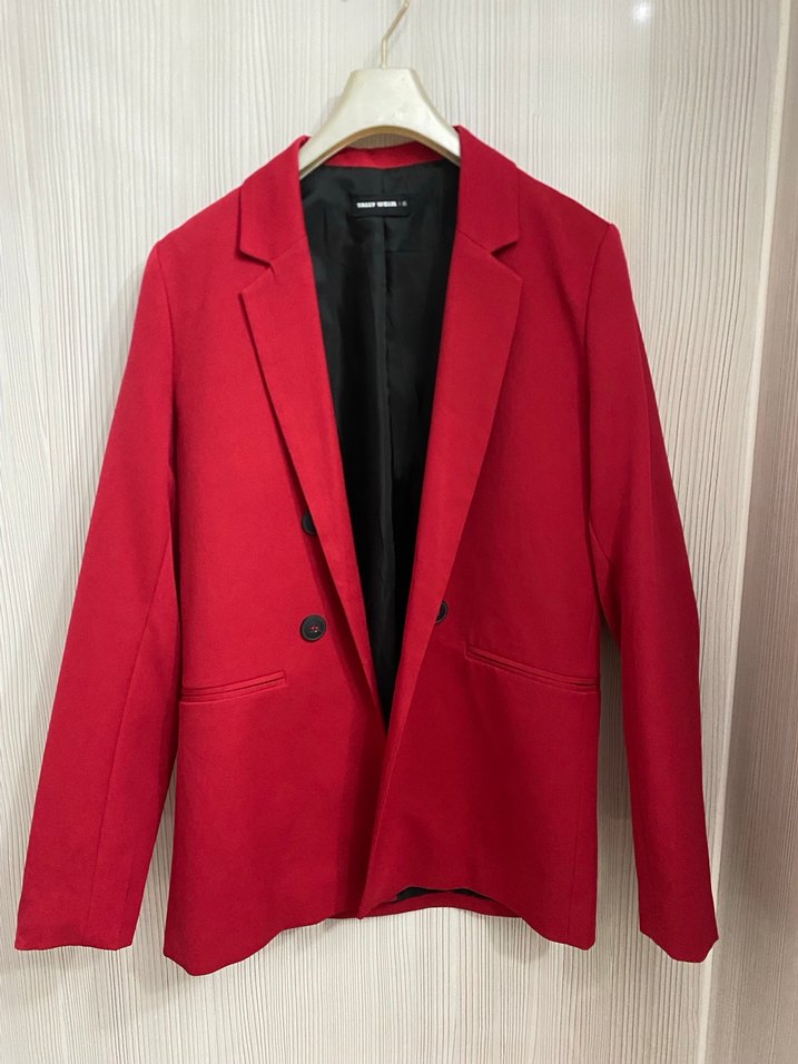 Koyu kırmızı renkte, düğmeli ve kruvaze yakalı kadın blazer ceket. Uzun kollu, midi boyda ve sentetik kumaştan üretilmiştir. Hiç kullanılmadı. Hiçbir hatası vs yok. Etikette xs yazıyor fakat üst bedenim s olmasına rağmen tam oturuyor dar değil. Teklif gönderebilirsiniz ✨