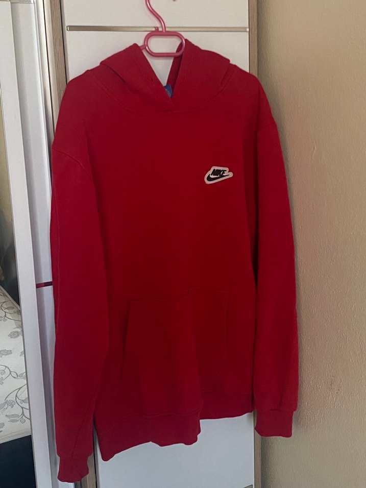 Koyu kırmızı renkte, bol kesim, uzun kollu ve bisiklet yaka erkek sweatshirt. Fermuarlı detaylı, yumuşak ve sıcak kumaştan üretilmiş, günlük ve sokak giyimi için uygun. Nike logosu göğüste yer alır.
