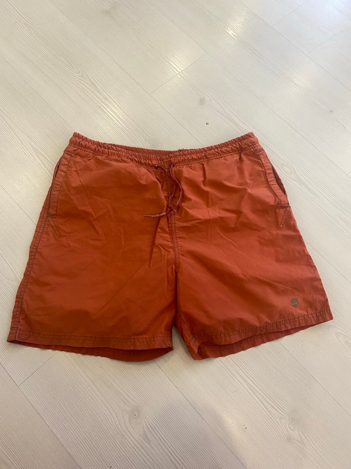 Koyu kırmızı renkte, bol kesim ve mini boyda erkek mayo şortu. Düz ve desen içermeyen tasarımıyla plaj için uygun. Orjinal ürün