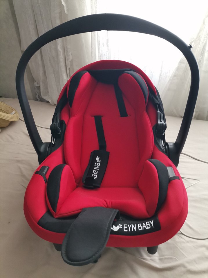Koyu kırmızı EYN BABY bebek puset , koruyucu yan destekler ve güvenlik kemeri ile donatılmıştır. Taşıma kolu mevcuttur.